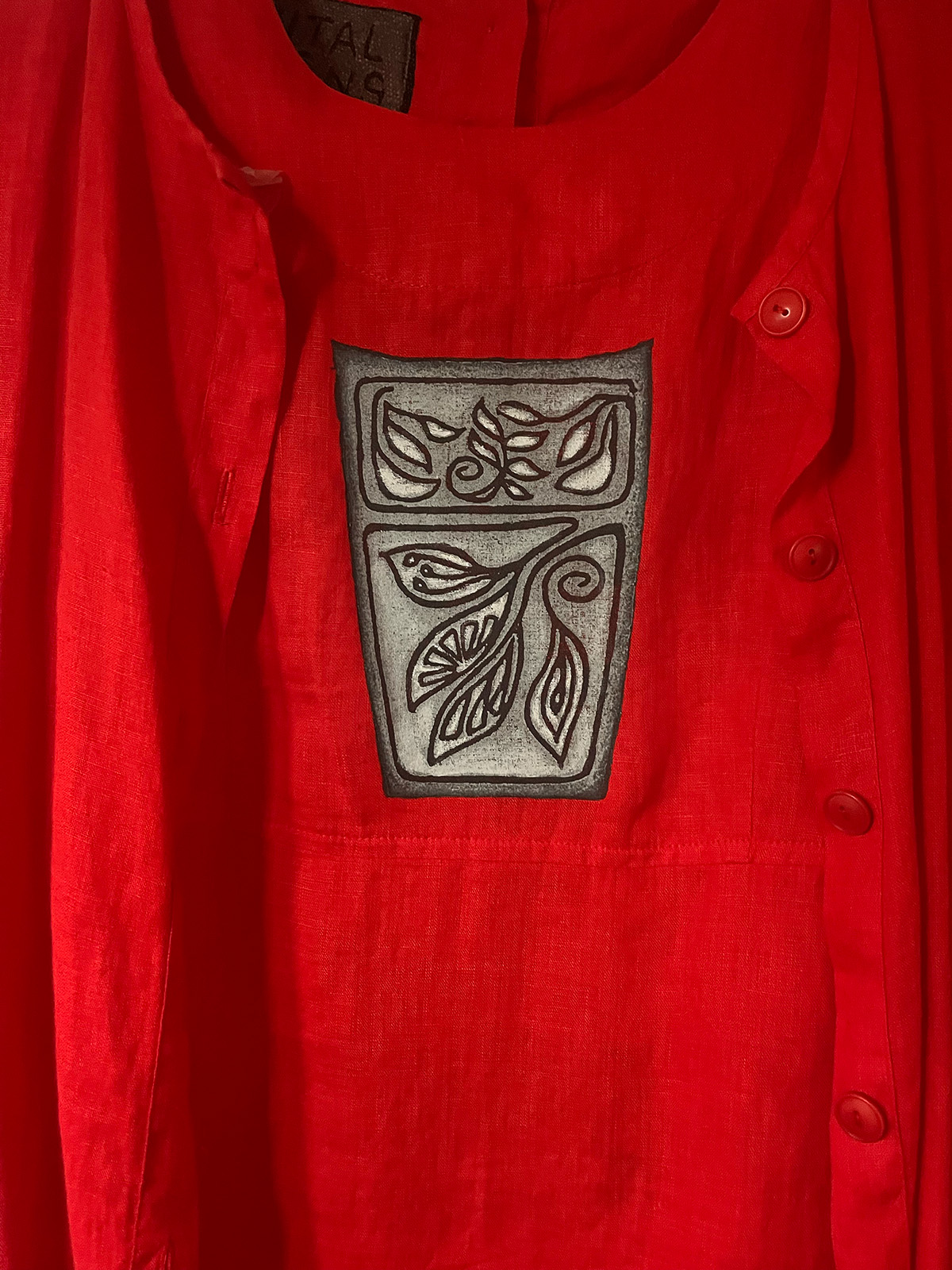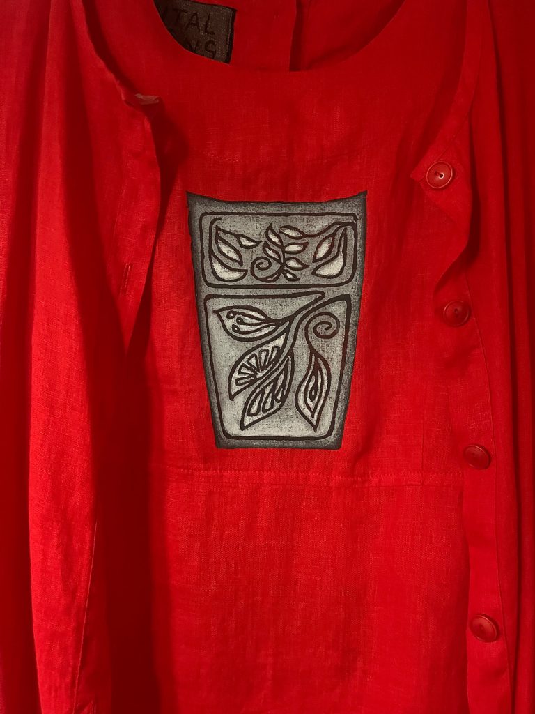 Vintage Vital Signs – one-of-a-kind garments and bags, block printed with original designs. Also upcycled pieces. All in natural fabrics – cotton and linen.